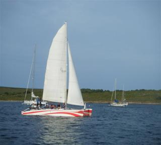 The catamaran and the staff is just in the entry of Fornells, where there is also a big free parking space. You will see the kayaks and bikes by the door.