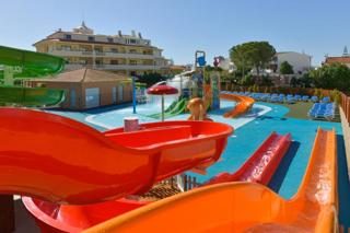A colourful splash zone with mini slides and water features, all on a soft, non-slip surface. There’s also a shaded baby pool for the youngest guests. - Playgrounds: