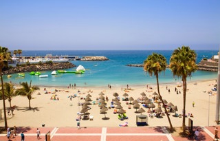 Playa Fañabe is the main beach in Costa Adeje. Built into a cove, the water is shallow and the current doesn’t tend to be rough.