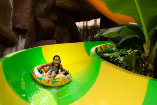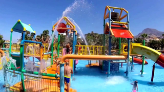 The kid’s pool is perfect for babies and toddlers as the water is incredibly shallow with colourful baby slides throughout.