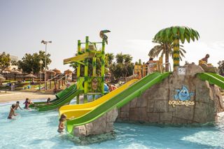 The zona mini is especially thought for the toddlers and smaller children with a calm pool and baby friendly slides. The Aqua Splash is a fun zone with castles on top of the water with slides and waterfalls where parents and the little ones can enjoy a nice family time. There is also a waves pool to feel as if you were on the beach.