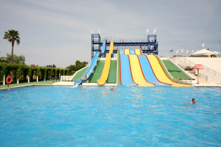 The water park has many different areas: calm pools for the babies and toddlers, castles inside the water that they can climb and go down in fun and kid-friendly slides for the 3-7 aged kids and faster and taller water slides and attractions for the bigger kids and adults. It has green places as well where you can rest under the nice shade of the trees.