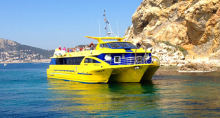 Just head to the port of Mahón and look for “Yellow Catamarans”, very easy to find.