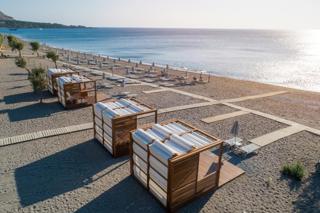 The resort sits directly on a long, sandy, gently sloping Blue Flag beach—ideal for paddling and sand play. Sunbeds, umbrellas, and beach bars are available, and there are baby-changing facilities nearby. - Nearby Family Activities: