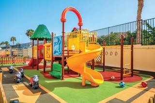 Within the hotel you will find play parks, mini golf and a mini club. There is even a multi sports court for kids. The mini club is available for children aged 3-12 years old. The mini club places must be booked in advance. We recommend you speak with the hotel about this when you check in so you don’t miss out. They arrange mini discos, games, water sports and more. There’s a soft play area, ball pit and climbing frame area supervised by the kid’s club team between 11am-5pm.