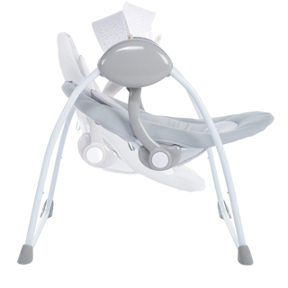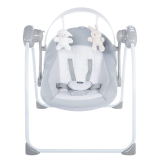 Chicco electronic swing for sweet moments of relax time with your baby. It provides parents with all the comfort and entertainment for their baby, featured with automatic swing motion. 5 different speeds, toy bar with 2 plush toys and 12 music settings. Includes padded seat insert with removable pillow. 2 position backrest for additional comfort.