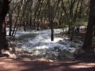 - A beautiful and natural fountain surrounded by a tree path that provides both a cool shade and an incredible view.