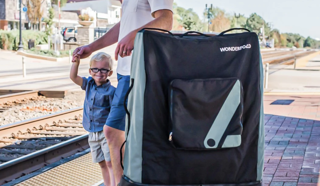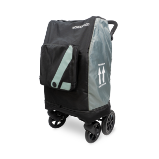 Keep your stroller wagon protected with this padded travel cover without having to remove the wheels. This durable, lightweight, water resistant cover comes with pockets, yes pockets, for easy access while traveling and is collapsible for compact storage. While this may be your best friend while traveling, it’s not recommended for baggage check! *W4 original handlebar must be removed to put on travel cover.