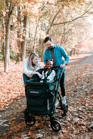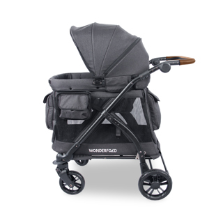 Our M1 is the perfect blend of your traditional stroller and our iconic stroller wagons. With space for one child, our M1 has all of those versatile WonderFold features including a removable, raised, and reclining seat, tons of storage space, an adjustable canopy, a one-step brake system, and all-terrain wheels. It also includes a pet ramp, removable pet leash, and space for your furry friend to tag along!