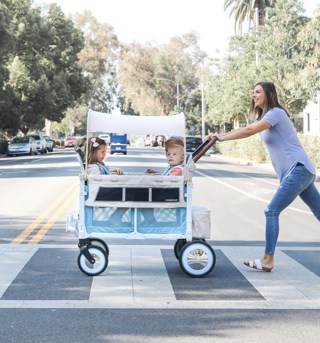 Stroller wagons just got a little more groovy. Inspired by the vintage VW bus, our new special edition stroller wagon will fulfil all your nostalgic fantasies with all those classic WonderFold elements. It includes features like the classic VW bumper, functioning headlights, and retro all-terrain XL wheels!