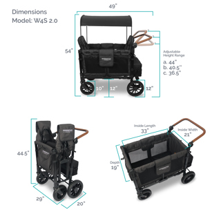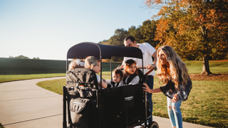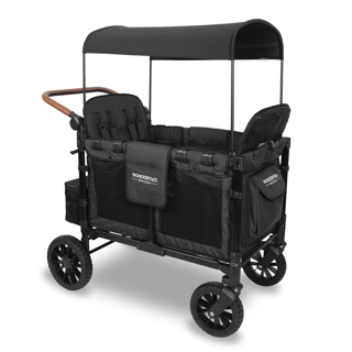 Our W4 Luxe Stroller Wagons, elegance is made to look and feel easy. These wagons can sit up to four children and leave ample space for all your belongings. No need to carry all of your bags and push a stroller. Your hands and back will thank you. The kids will love their comfy raised seats that are reclinable for those afternoon naps and even removable for added space. For even more space, we have a removable rear basket for all of your essentials. They will be secure with our 5-point magnetic safety harness. For those sunny days, our adjustable canopy will come in handy. It is easy to move side to side depending on the time of day and even up and down to accommodate growing children. The vegan leather, adjustable handlebar is perfect for parents of all heights and adds just the right amount of class to your ride. Our all-terrain XL wheels and one-step brake are essential for epic adventures. The deep carriage has mesh sides for optimal ventilation, keeping your wagon airy and smelling fresh. Perfect for all your daily outings - whether you’re going to the amusement park, beach days or simply running errands, our Luxe wagon has got you and your kids covered!