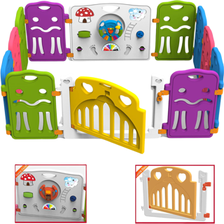The interactive play area for baby each large piece measures 59cm in height and 76cm in length and the small ones measure 59 x 38cm. There is a total of 10 small pieces and 2 Large pieces allowing you to select the required size to uit your accomodation size.