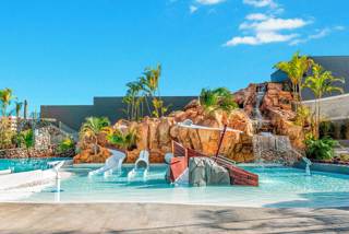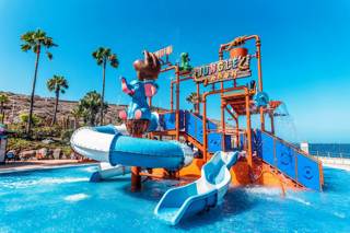 Located in the quiet resort of Golf Del Sur, a five minute drive from Tenerife South airport, the Bahia Principe Fantasia is without a doubt one of our top family hotels in Tenerife. This hotel is absolutely magical and even has a fairytale castle beside the pool that lights up every night! There are a grand total of 7 swimming pools in this hotel including an adult only sanctuary, a kid's pool and even an on-site waterpark full of slides, tipping buckets and sprinklers. Most of the pools are heated as well, most importantly the two children’s pools. The rooms are spacious and junior suites and family rooms all come with a separate lounge area with sofa beds. Most rooms can accommodate between 2-5 people. There are plenty of dining options including a huge buffet restaurant to suit even the fussiest of eaters, 3 A La carte restaurants (Asian, Steakhouse and Italian) as well as the Dream Factory snack bar, a favourite with the kids! The entertainment is excellent with minidiscos, circus acts and live shows. There’s kid’s clubs and teen clubs with perfectly chosen activities for specific age groups. There are several bars and an amazing entertainment team working day and night to keep the whole family entertained.